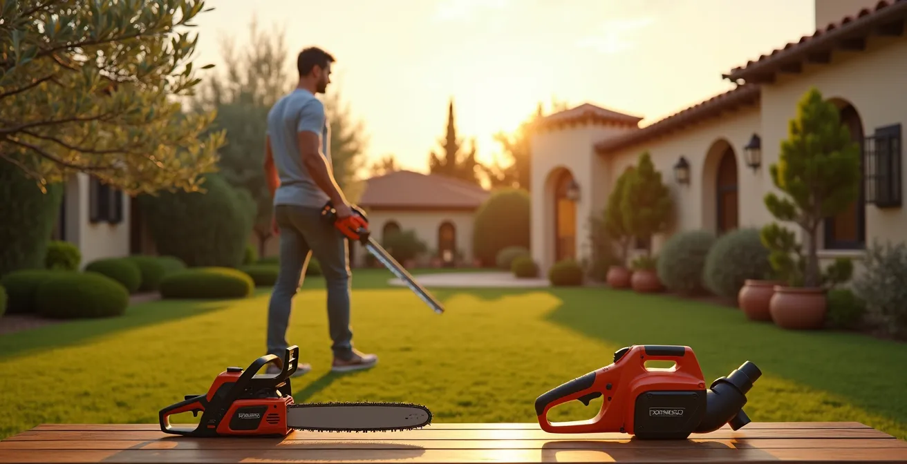El pilar de una transición gradual exitosa es la estandarización. Al empezar, elige una marca de herramientas (como Bosch, Gardena, DeWalt, entre otras) que ofrezca un ecosistema de baterías unificadas. Esto significa que la misma batería servirá para tu soplador, tu cortasetos y tu futura motosierra. Ahorrarás dinero al no tener que comprar una batería y un cargador con cada nueva herramienta y simplificarás enormemente la logística de tu cobertizo.