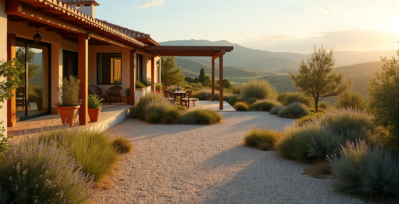 La sabiduría popular nos bombardea con consejos genéricos como «instala riego por goteo» o «planta especies resistentes». Si bien son parte de la solución, a menudo fallan porque se aplican como parches en un sistema roto. El verdadero problema no es la elección de una planta sobre otra, sino la filosofía de diseño que hemos heredado: una que impone un ideal estético ajeno a nuestro clima mediterráneo, continental o atlántico. Esto nos obliga a luchar constantemente contra la naturaleza, una batalla costosa y agotadora.