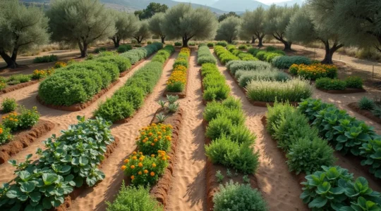 Intercalar cultivos de familias diferentes, insertar plantas aromáticas de olores fuertes (albahaca, tagetes, caléndula) y mantener corredores de flores que alimenten insectos depredadores transforma un diseño vulnerable en uno resiliente. Esta arquitectura diversificada no elimina las plagas, pero las mantiene en niveles tolerables sin intervención química.